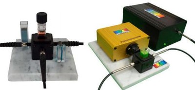 StellarNet nabízí několik držáků kyvet pro různé aplikace. CUV1 je čtyřcestný držák pro transmisi, absorbanci, fluorescenci a měření barevnosti dodávaný se dvěma UV kolimačními čočkami. Podle Vaší aplikace si můžete upravit geometrii. Oproti tomu CUV-F je držák na kyvetu specializovaný na měření fluorescence pomocí LED zdroje SL1-LED. Tento držák je dodáván s Y-optickým vláknem.