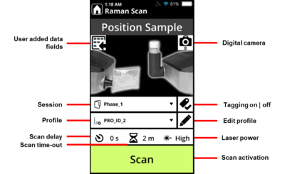 Nové zdokonalené uživatelské rozhraní. To stále vychází z filosofie přístrojů First Defender a Gemini. Stávající uživatelé přístrojů Thermo tak jsou schopni plně ovládat přístroj s minimálními nároky na zaškolení, rozhrání přidává ale navíc řadu funkcí. Níže je například ukázka rozhraní v režimu mření vzorku.