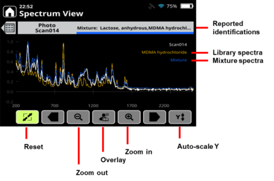 Vylepšené rozhraní pro prohlížení spekter na spektrometru. Zajímavou funkcí je porovnávání spekter u vzorků směsí. Současně se zobrazuje změřené spektrum, teoretické spektrum směsi a vždy jedno spektrum pro čistou látku obsaženou ve směsi. Stisknutím šipky se cyklicky zobrazuje vždy další spektrum čisté látky nalezené ve směsi. Samozřejmostí i nadále zůstává možnost překrývání s dalšími spektry z knihovny nebo spektry dříve změřených vzorků.