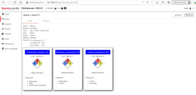 Kombinuje algoritmy, známé z přístrojů Gemini a FirstDefender, včetně možnosti tagování (režim ID), kdy výsledkem je seznam nalezených látek, a algoritmy, využívané spektrometrem TruNarc (algoritmy optimalizované pro analýzu reálných vzorků drog, režim Screener). Výsledkem je Alarm, Warning, Clear nebo Inconclusive a název nalezené látky. Více o algoritmech používaných u spektrometru TruNarc nalezenete v našem starším aplikačním listu Trendy v oblasti terénní analýzy drog (ke stažení zde). Uživatel může snadno přepínat mezi režimy ID a Screener, nebo si vytvářet různé profily, které používají předem zvolený režim vyhodnocení spektrálních dat.