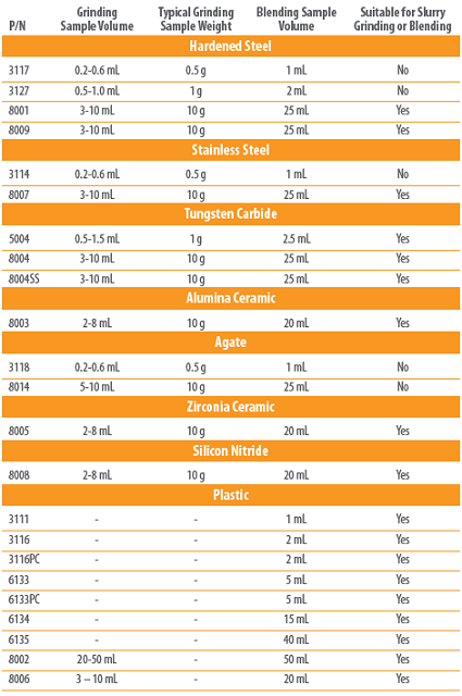 Mlýn je velmi flexibilní. Z hlediska množství a charakteru vzorku je pro mlýn k dispozici dále uvedený široký sortiment mlecích nádob: