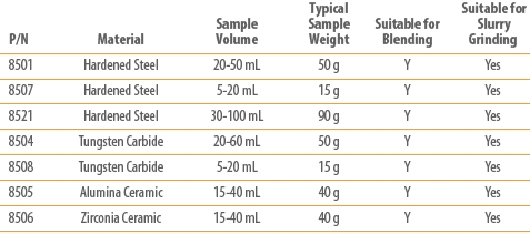 Mlýn je velmi flexibilní. Dle charakteru a množství vzorku je k dispozici následující sortiment mlecích přípravků:
