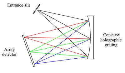 Vláknový UV-VIS spektrometr firmy StellarNet je unikátní použitím konkávní holografické mřížky. V tomto uspořádání je jako jediný optický prvek použita konkávní mřížka, která zároveň rozkládá světlo na jednotlivé vlnové délky a fokusuje je na detektor.