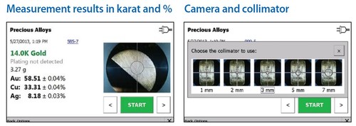 Reprodukovatelností analýzy je u verze s velkoplošným SSD detektorem na úrovni 0.03 % (směrodatná odchylka z 10-ti měření) při analýze 14-ti karátového zlata a době měření jen 5 s! Pro specialní případy (AuPt slitiny, ...) pak 10 s. U základního modelu je tato hodnota pořád 0.04 % pro dobu měření 60 s. Výsledek analýzy je uveden může být jak v procentuálním zastoupení tak také v karátech.