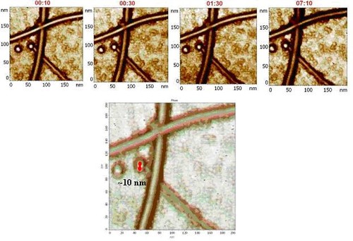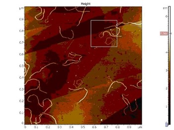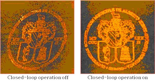 Ukázka skenu stejného místa v rozmezí 7 hodin za laboratorní teploty. Drift za tuto dobu činí cca 10 nm (1,5 nm za hodinu) - Linearizovaný skener - Skener mikroskopu je linearizován pomocích kapacitních senzorů, které zajišťují přesné a reprodukovatelné umístění skeneru. Senzory 10x zlepšují linearitu, odstraňují creep a umožňují zoom v jediném kroku. Tyto senzory fungují se všemi měřícími módy. Unikátní systém Close-loop Scanner feedback umožňuje provádět velice malé skeny - 50 - 100 nm.