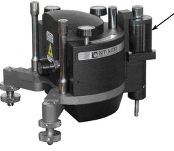 - Hlava pro samostatné měření (s motorizovanou nohou) - Tato hlava využívá skenování hrotem a je možné ji využít pro měření neomezeně velkých vzorků ve všech standardních módech. Šipka ukazuje motorizovanou nohu pro automatické přiblížení.