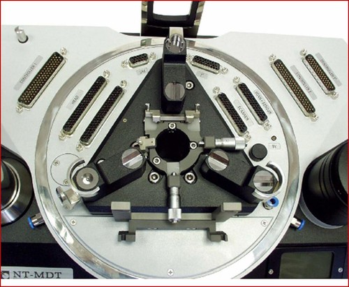 Spodní skener pro skenování hrotem DualScan - kombinace obou skenerů, nabízí rozsah až 200x200um v rovině XY a až 16 um v ose Z Jedná se o unikátní vlastnost - obě metody skenování jsou dostupné v jednom mikroskopu a je možné si vybrat ten nejvhodnější pro Vaše experimenty. Výměna obou skenerů je velice jednoduchá může ji provést sám uživatel během několika minut. - Modularita - AFM mikroskop byl od začátku projektován jako modulární stavebnice, není problém ho rozšiřovat o široké spektrum příslušenství a dalších dílů. Všechna jsou nainstalována na jednom základním přístroji (základna, kontrolér, optika a software). Přestavba je jednoduchá a časově nenáročná - zabere kolem 5 minut. Modularita není vykoupena parametry systému díky použitým materiálům - zejména safír a titan.