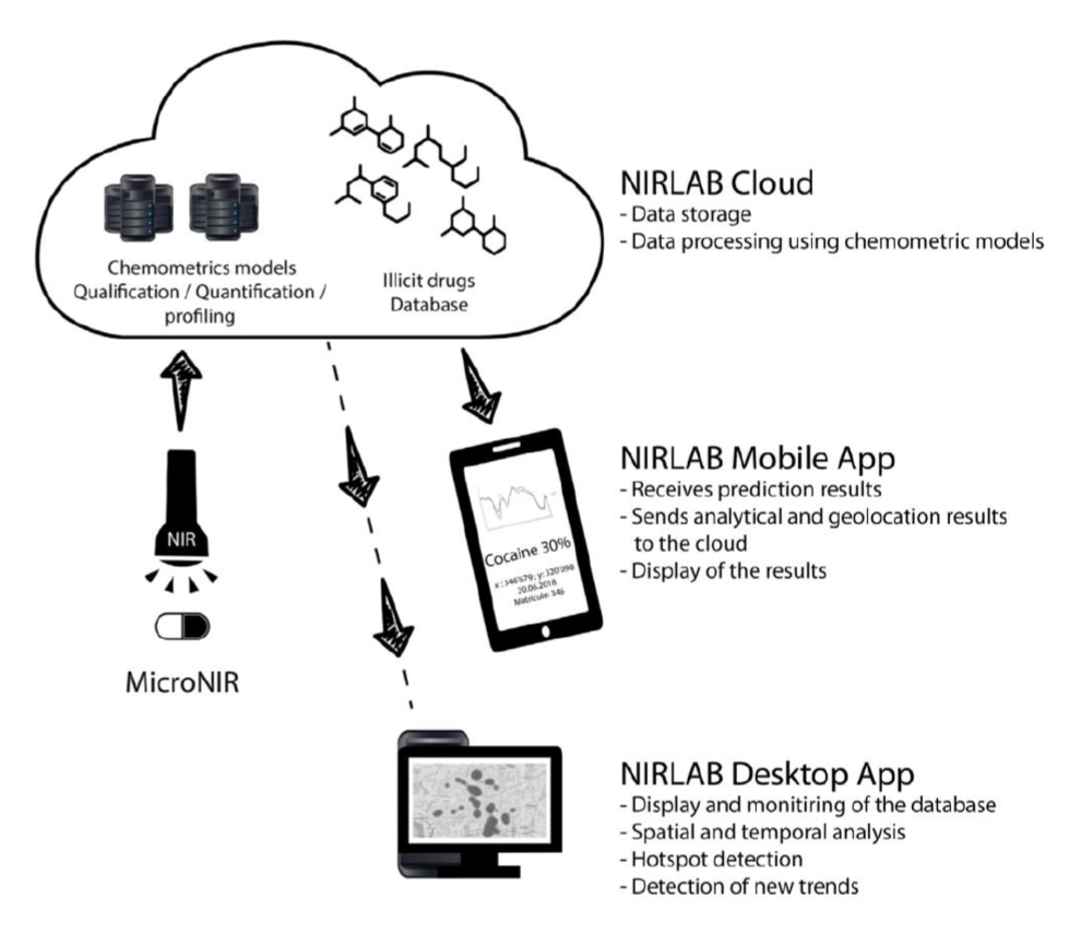 Systém NIRLab umožňuje rychlou terénní analýzu vybraných drog, včetně rychlé kvantitativní analýzy přímo v terénu. Analýza je jednoduchá, velmi rychlá a nepotřebuje žádné chemikálie atd. Analýzu může provádět běžně zaškolený pracovník (doba školení cca 15 minut). Jedná se o komplexní systém postavený na cloudových řešeních a počítá se s tím, že v terénu pracuje větší počet přístrojů. NIRLab ve spojení s unikátním hardware spektrometrů microNIR (VIAVI, USA) pak zajišťuje to, že všechny přístroje vždy analyzují stejně (v daný okamžik pracují vždy všechny spektrometry s nejnovějšími algoritmy a stejnou verzí knihovny). To je možné i díky unikátní reprodukovatelnosti výroby spektrometrů microNIR, všechny spektrometry produkují shodné výsledky, a to i v režimu kvantitativní analýzy. Data mohou být ukládána do centrálního cloudového uložiště organizace a zde je s nimi možno dále pracovat (tisk protokolů, správa dat, export) případně je možné provádět nadstavbové analýzy (trasování, mapování…). Celý systém je plně lokalizován do českého jazyka.