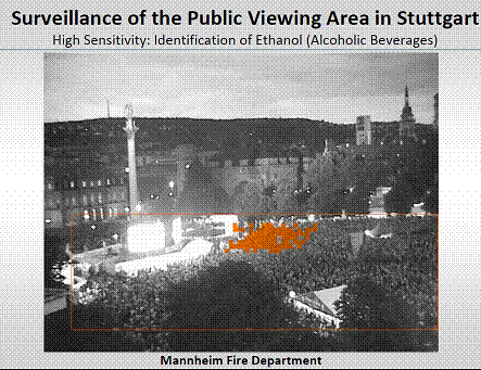 Zařízení SIGIS 2 (výrobce firma Bruker Optik, Německo). Jedná se o novou technologii, která využívá pasivní infračervenou absorpční spektrometrii a umožňující současné prostorové skenování. Postupně se měří infračervená absorpční spektra, kde jako zdroj infračerveného světla slouží pozadí atmosféry nebo terénu (pasivní technologie). Dále je skenována určitá oblast s úzkým prostorovým úhlem. Obdržíme obraz (mapu), kde každému bodu přísluší kompletní IR spektrum získané FT IR spektrometrem s vysokým rozlišením (ukázky spekter methanolu a amoniaku jsou na Obr. 1). Je tak schopný detekovat nejen přítomnost nebezpečných látek, ale získat i informaci o jejich rozložení a šíření terénem. V případě, že danou oblast snímají dvě zařízení SIGIS současně z různých míst, můžeme získat i informaci o 3D rozložení a šíření škodlivin prostorem.